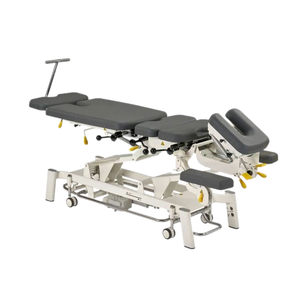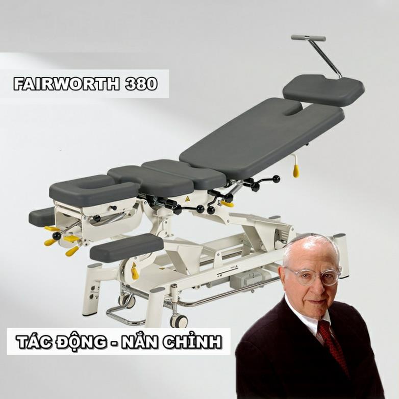 Ghế Vật Lý Trị Liệu EMSBODY FAIRWORTH 380 có bàn uốn, kéo và thả có thể điều chỉnh độ cao của xe nâng điện đầy đủ chức năng, được trang bị cơ cấu uốn dọc và ngang bằng gỗ bằng tay, cơ cấu kéo thắt lưng bằng tay, cơ cấu kéo đầu bằng tay và các cơ chế thả thẳng thắt lưng, xương chậu, mũ sắt, lồng ngực. Mẫu tiêu chuẩn bao gồm tay cầm điều khiển độ uốn có thể tháo rời, cánh tay phía trước, bộ mở rộng hỗ trợ chân.