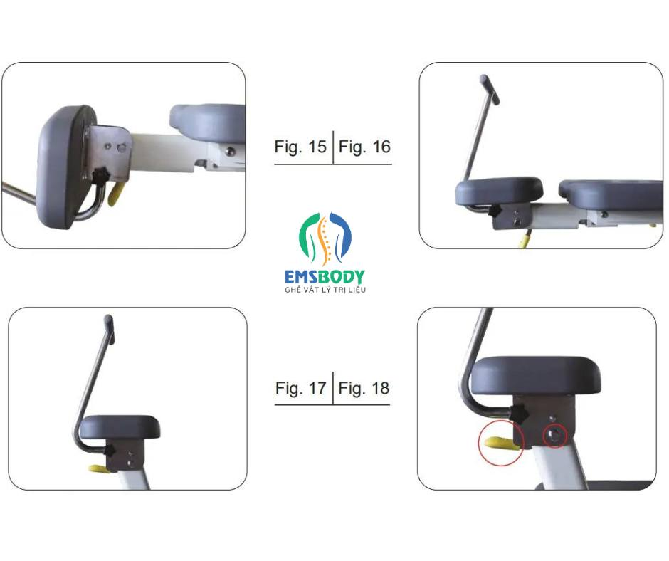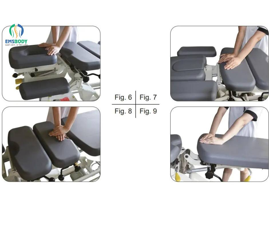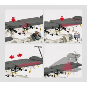 Mặt ghế được trang bị 2 dây đai (đi kèm) để cố định bệnh nhân khi tiếp tục làm việc. Thắt lưng phải được gắn bằng cách sử dụng giá đỡ đặc biệt ở cả hai bên của bàn.